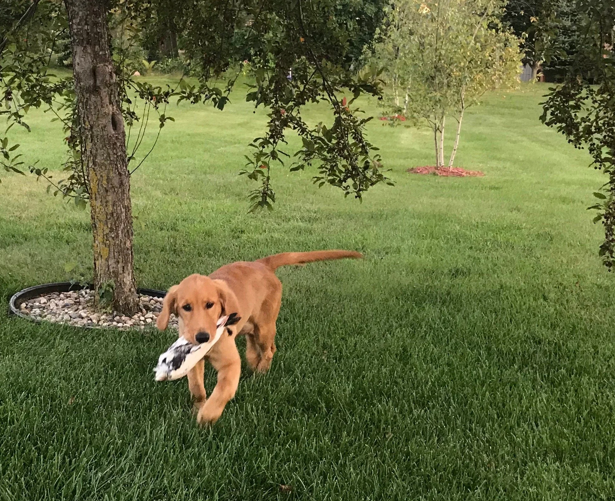 Hi Mikaela and Travis - Tony has been working Scout to flush birds. This week she was working with a trainer on gun training and retrieving and he was so impressed with her. He told Tony that she is super smart and a treat to work with. he asked where we got her - he said she’s an A+ dog and one of the best puppies he’s worked with. We thought you should know the Scout is a smart girl and turning into a great hunter!